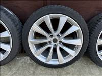 Eladó a képen látható használt 4db Gyári 19" Tesla Model 3 Sport (V1) téli kerék garnitúra gyári Tesla szerelés BLE szenzorral Faceliftes autókhoz.