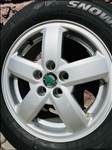 Gyári Skoda Octavia 15 colos alufelni téli gumival. Felni használatból adódó gyenge karcok láthatóak 2 felninél, de nem ütnek, görgőzésre nem szorulnak, nem magyar utakon használtam. A gumikban nem egész 600 km van, anno sajnos motorhiba miatt az autó le lett állítva. A gumik 7 évesek, mint a fotón is láthatóak, de mindig száraz és hűvös helyen tároltam, nincs repedés és nem keményedtek fel. Egyben eladóak! További információkért hívjon bizalommal! Köszönöm